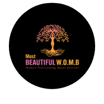 Logo with a pink and yellow tree and text reading 'Most Beautiful W.O.M.B Women Overcoming Major Barriers'.